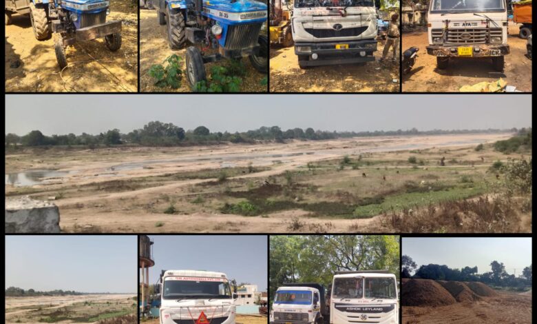 खनिजो के अवैध परिवहन, भण्डारण पर 01 ट्रेलर, 3 हाइवा, 2 ट्रेक्टर ट्राली वाहन और 72 घनमीटर भण्डारित रेत जप्त..