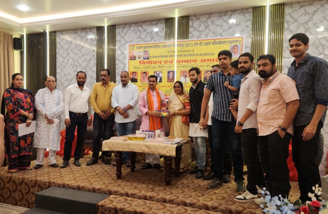 प्रयास प्रकाशन साहित्य अकादमी एवं अक्षय पब्लिकेशन द्वारा वरिष्ठ साहित्यकार श्रीमती तुलसी तिवारी की तीन पुस्तकों का विमोचन एवं सम्मान समारोह आयोजित.. साहित्य समाज को नयी दिशा देता है- तोखन साहू..”साहित्यिक साधना का सम्मान होना चाहिए” : डाॅ पाठक