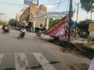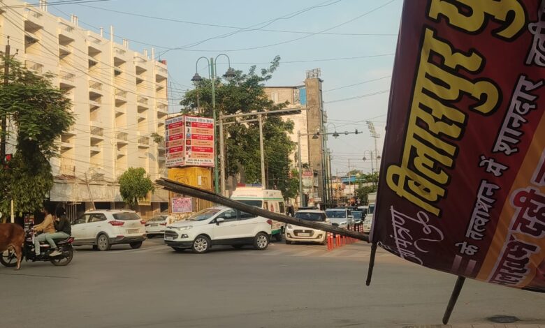आयोजकों की लापरवाही, निगम की उदासीनता और जनता के जान को जोखिम.. सत्यम चौक में जान का खतरा बना पोस्टर का बांस.. आयोजक छोड़ गए खतरा.. क्या होगी कार्रवाई..?
