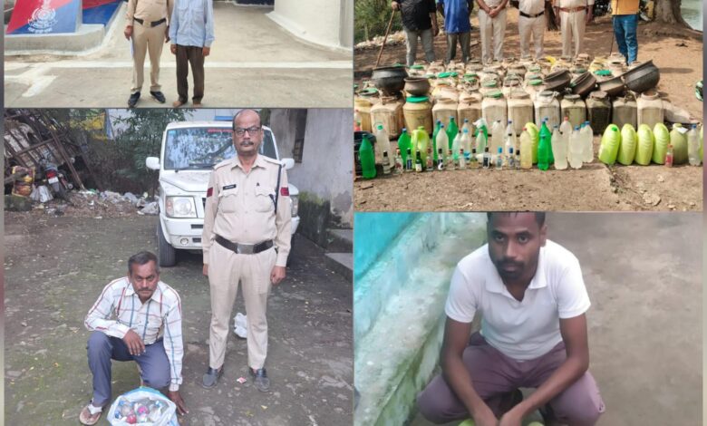 मस्तूरी वृत्त प्रभारी ऐश्वर्या मिंज ने ठाकुरदेवा के विनोद मिरी से 7.56 लीटर देशी मदिरा प्लेन जप्त की, जबकि कोटा वृत्त प्रभारी दिनेश ध्रुव ने ग्राम गोबरीपाट (थाना कोटा) निवासी संतोष जोशी के कब्जे से 20 लीटर महुआ शराब जब्त कर आरोपी को जेल भेजा।