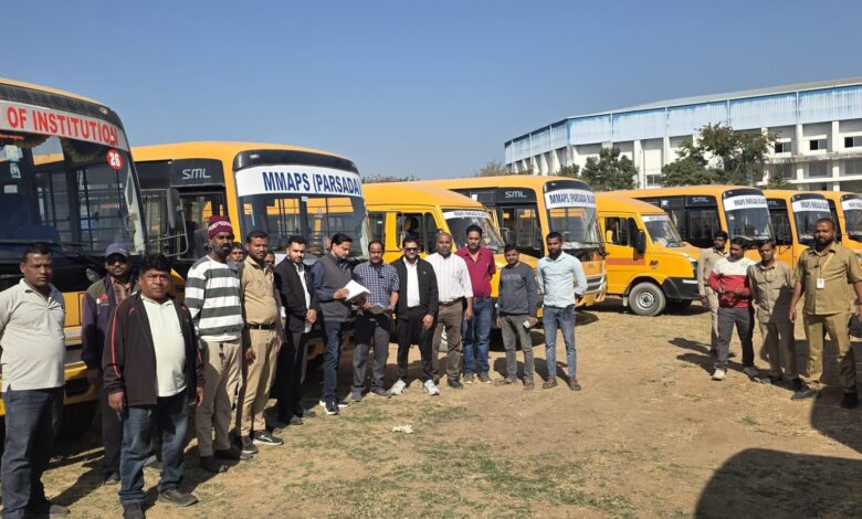 बिलासपुर– क्षेत्रीय परिवहन कार्यालय द्वारा रविवार 18 जनवरी 2026 को ग्राम लगरा स्थित आरटीओ परिसर में विशेष जांच शिविर का आयोजन किया गया। इस शिविर में शहर की विभिन्न शैक्षणिक संस्थाओं में संचालित स्कूल बसों की मैकेनिकल स्थिति और वाहन प्रपत्रों की गहन जांच की गई, परिवहन विभाग के साथ पुलिस विभाग, यातायात पुलिस और स्वास्थ्य विभाग की संयुक्त टीम ने इस अभियान को अंजाम दिया..