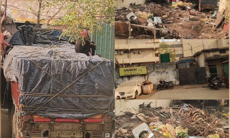 शहर के बीच अवैध कबाड़ का गोरख धंधा.. गेट बंद कर ट्रक में भरा रहा लोहा.. कबाड़ी खुले आम कर रहा हजारों क्विंटल लोहे के कबाड़ का वारा न्यारा..
